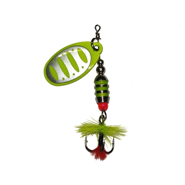Вертушки ручной работы ROKA - это серия вращающихся блесен. Вес 4 грамм. Размер лепестка №2. Данные вращающиеся блесны могут характеризоваться как: приманки на окуня ,щуку, головля, жереха, форели ,язя. В этих приманках используются современные конструктивные решения, которые обеспечивают надежную и стабильную игру блесен, и, что самое главное, делают их очень привлекательными для любой хищной рыбы. Главный элемент блесен - вращающийся лепесток. Он очень легок, сделан из латуни и обладает хорошими динамическими показателями при вращении в воде, что позволяет осуществлять длительную проводку при минимальной скорости движения, в зоне предполагаемой стоянки рыбы. Лепесток "заводится" сразу. На всех тройниках Mustad (Норвегия) связана яркая мушка из натурального пера Whiting (США). Основа блесны - нержавеющая углеродистая проволока AFW (США).