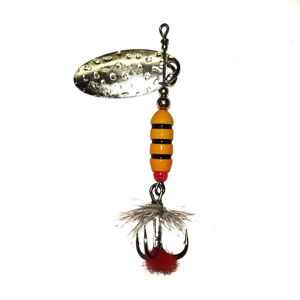 Вертушки ручной работы ROKA - это серия вращающихся блесен. Вес 5.2 грамм. Размер лепестка №2. Данные вращающиеся блесны могут характеризоваться как: приманки на окуня ,щуку, головля, жереха, форели ,язя. В этих приманках используются современные конструктивные решения, которые обеспечивают надежную и стабильную игру блесен, и, что самое главное, делают их очень привлекательными для любой хищной рыбы. Главный элемент блесен - вращающийся лепесток. Он очень легок, сделан из латуни и обладает хорошими динамическими показателями при вращении в воде, что позволяет осуществлять длительную проводку при минимальной скорости движения, в зоне предполагаемой стоянки рыбы. Лепесток "заводится" сразу. Крючок Mustad (Норвегия) связана яркая мушка из натурального пера Whiting (США). Основа блесны - нержавеющая углеродистая проволока AFW (США).