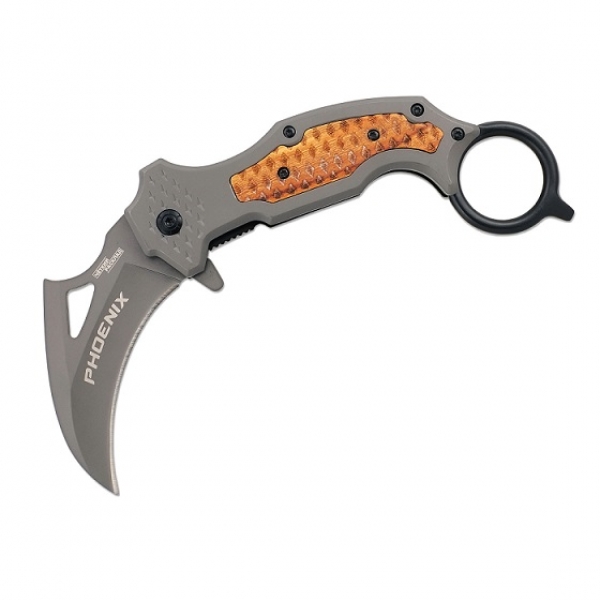 Роскошный керамбит Phoenix с нестандартной геометрией и превосходными режущими характеристиками. Его клинок стандартной формы «коготь орла» дополнительно оснащен глубоким подпальцевым упором на пяте и покрыт антибликовым напылением. Хваткая рукоять с традиционным кольцом на тыльнике также оборудована подпальцевыми дугами и отделана накладками из металла и стабилизированной древесины. Складной механизм «Феникса» оснащен автоматическим форматом раскладывания с помощью флиппера и надежным замком liner lock.