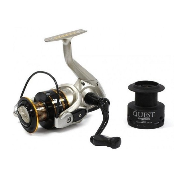 Фирма Black Side не очень широко известна на российском рынке рыболовных товаров. Тем не менее, поклонники спиннинговой ловли успели оценить бюджетные безынерционки, выпускаемые под данным логотипом. Серия Quest может заинтересовать как тех, кто только осваивает рыбалку на спиннинг, так и более опытных рыбаков. Представленная здесь модель относится к классу «лайт», ее вес составляет 269 гр. Передаточное отношение - 5,1:1. Несмотря на то, что представленная модель относится к недорогим, ротор проходит компьютерную балансировку, что способствует равномерной намотке плетенки или лески. Очень удобно, что в комплекте к модели 3000 FD идет дополнительная шпуля, которая выполнена из материала графит. Это позволит оперативно заменить шнур или леску, что особенно важно в меняющихся условиях ловли.