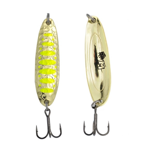 Универсальная блесна среднего размера, для ловли большинства видов хищных рыб.Легко заводится при медленной подаче. Характер колебаний зависит от скорости проводки, что позволяет импровизировать и добиваться лучшего результата.В соотношении размер/вес, относится к блёснам «тяжёлого типа».Идеально для рек с быстрым течением.Можно использовать в качестве приманки для отвесного блеснения.Материал – латунь, оптимальный для данного типа блёсен.Оснащаются острыми и надёжными тройниками Моттомо.Способ крепления тройника – через прочное заводное кольцо.