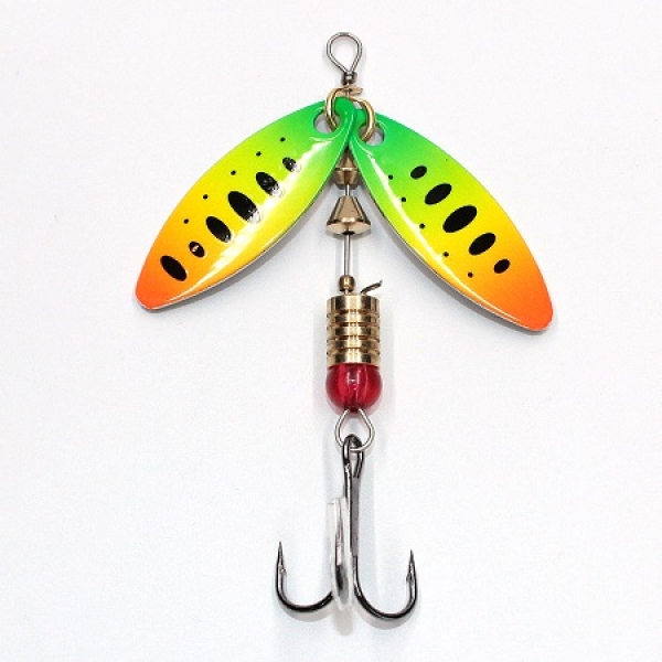 Блесна с двумя лепестками продолговатой формы является универсальной, позволяющей использовать разный характер и скорость проводки, в водоемах с различным течением и видимостью. Применяется для ловли практически любой хищной рыбы.