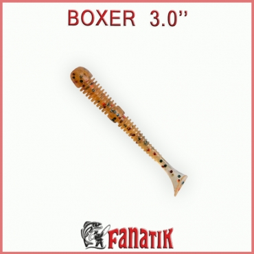 Приманка BOXER представляет собой виброхвост. Удлиненное ребристое тело приманки создает шумы в водной среде, заставляя тем самым, обратить на себя внимание любому, даже пассивному хищнику. Пятка виброхвоста очень подвижна и работает даже при самой медленной проводке. Приманка BOXER делается из мягкого съедобного силикона, наполненного природным аттрактантом и солью. Основным объектом ловли на данную приманку является окунь и судак , но не откажется от нее и щука и сом.