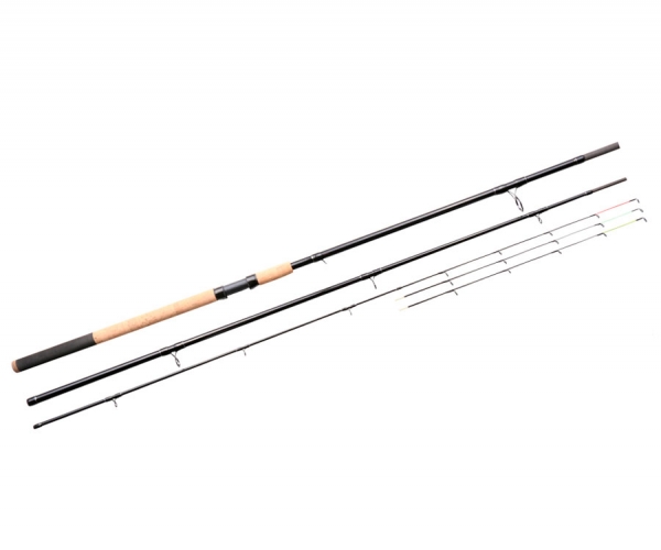 Удилище самой популярной и универсальной длины, которая подходит для решения большинства рыболовных задач. Обладая средним строем, эта модель тяжелого класса не только дает возможность ловить на приличных дистанциях тяжелыми кормушками, но и будет гасить все рывки рыбы при вываживании. Удилище оптимально для ловли на реках с умеренным и средним течением на дистанциях 30–60 м, а также для ловли карпа на коммерческих водоемах с помощью кормушек The Method. Оптимальный вес кормушек составляет 40–100 г.