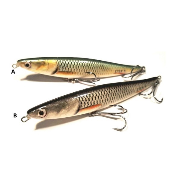 Воблер HUNTER ETER приманка, жизнь которой дает рыболов, оживляет ее как за счет работы с удочкой, так и с переменной скоростью поворота рукоятки катушки. При ускорении намотки ETER выходит на поверхность и отмечает свое присутствие, а затем снова погружается на глубину, заданную рыболовом. Мы сами выбираем скорость движения воблер для того, чтобы охотиться на жереха от очень медленного до скоростного экспресса.