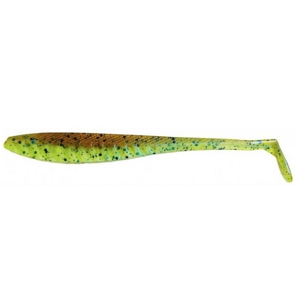 Hustle Minnow — виброхвост прогонистой формы, с небольшой трапециевидной «пяткой», длинным деликатным хвостиком и характерной ребристой нижней частью.