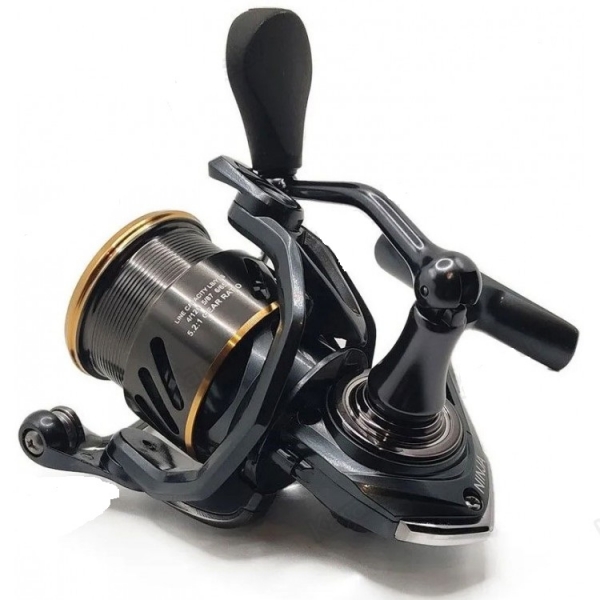 Спиннинговая катушка Dayo Ninja – это современная катушка с применением передовых технологий. В катушке используется облегченный ротор (Air Rotor), ролик с антизакручивателем и подшипником для равномерной укладки лески, анодированная алюминиевая шпуля с титановым покрытием на бортике для облегчения схода лески, тонкая ручка из алюминия с прорезиненным кнобом, большой удобный фрикцион с резиновым уплотнителем внутри и точной регулировкой усилия затяжки шпули, корпус из графита для облегчения веса и повышения прочности катушки, металлическая главная пара с лазерной фрезеровкой зубьев шестерни. В катушке установлено 5 шариковых и 1 роликовый подшипник, который служит для мгновенного стопора.
