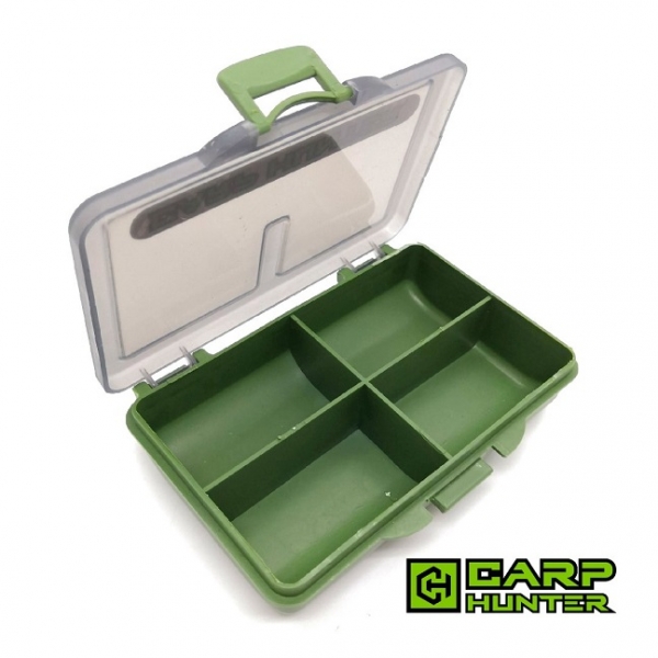 Коробка карповая 4 отделения (105*75*24мм) CarpHunter - коробка небольшого размера, отлично помещается в карповой коробке Tackle Box от CarpHunter, выполнена из жесткого пластика, имеет 4 отделения для хранения различных мелочей, применяемых в изготовлении карповых монтажей и оснасток.