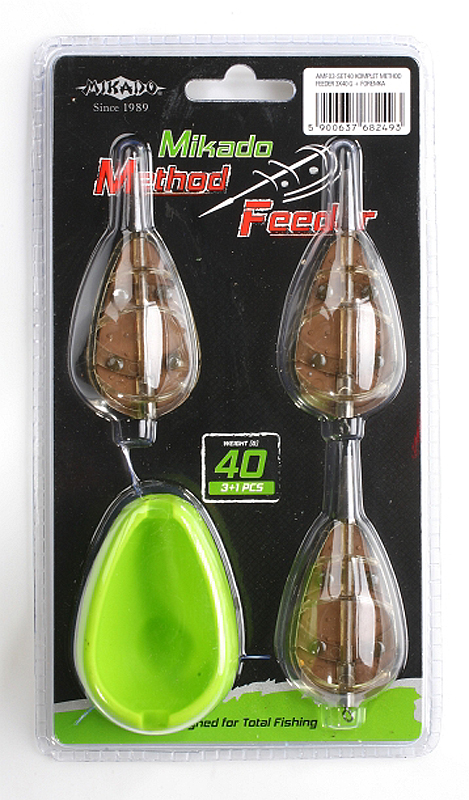 Набор методных кормушек с формой для фидерной ловли Mikado Method Feeder  состоит из трех кормушек 40 грамм и пресс-формы для наполнения кормушек прикормкой. Кормушки выполнены из пластика и отличаются очень высоким качеством литья и аккуратностью изготовления.