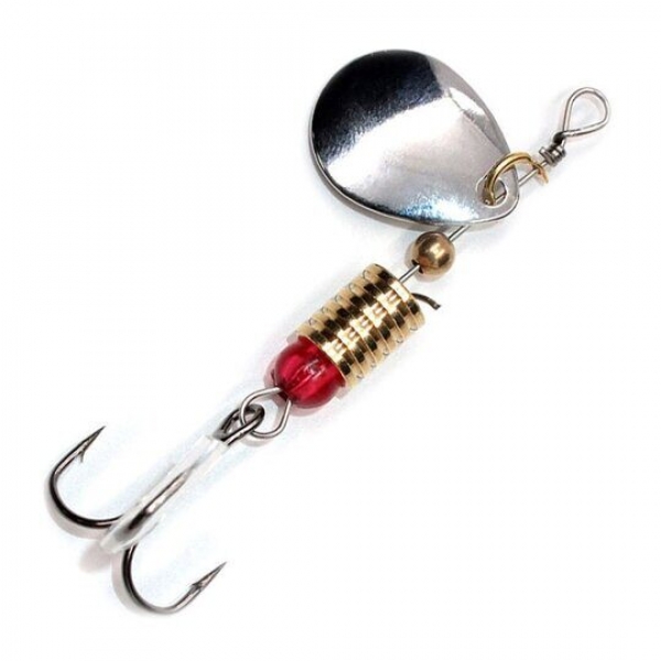 Блесна вращающаяся Namazu "Sunstrider" весом 12.5 г является популярной приманкой для спиннинговой рыбалки. Конструкция предельно проста. Представляет собой ось с литым сердечником, вокруг которого вращается металлический лепесток округлой формы, при вращении дающий угол отклонения от оси 60 градусов.Чем больше угол отклонения от оси – тем больше шума в воде при проводке создает вертящийся лепесток. Лепесток прикреплен к стержню с помощью хомутика. Оснащена тройным крючком. Применяется для ловли практически любой хищной рыбы.