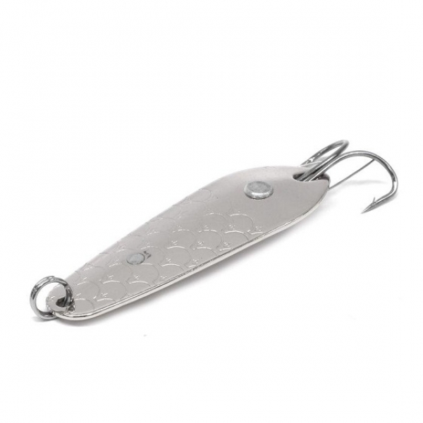 Модель колебалки с узкой, слегка расширенной и изогнутой в нижней части пластиной. Подойдет для облавливания обширных глубоких акваторий, спокойных и с небольшим течением. Особенность блесны от бренда Namazu Wild Hammer  - двойник с проволочной защитой, которая прикрывает жала от зацепов. Потому приманку можно провести в местах с подводными зарослями, где любят устраивать засады зубастые щуки и взрослые окуни. Дразнящие колебания блесны выманят хищников из укрытий. Лицевая часть пластины почти полностью покрыта фигурным рифлением - чешуей. У моделей с блестящими окрасами оно способствует естественным бликам.