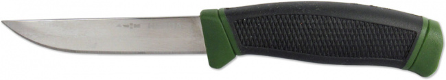 Надёжный и практичный нож, выполненный в скандинавском стиле. В этом ноже практично абсолютно всё: двухкомпонентная рукоять из резины и пластика, короткий мощный клинок из нержавеющей стали, удобные ножны из ударопрочного пластика.