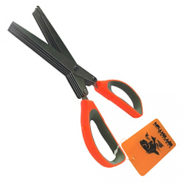 Ножницы рыболовные для резки червей и опарыша имеют удобные, нескользящие ручки с силиконовыми вставками. Также они нашли себе применение как у любителей, так и у спортсменов-рыболовов, ведь эти ножницы имеют пять лезвий вместо трёх, как у других моделей, цена на них дешевле, чем на профессиональные модели рыболовных ножниц.