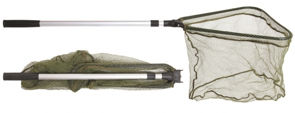 Складной подсачек с треугольной формой сачка и с телескопической рукояткой.