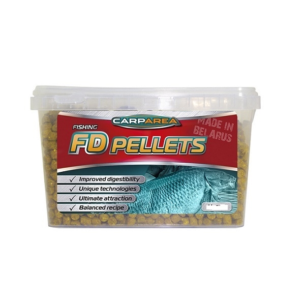 CARPAREA «FD PELLETS»- это специальная гранула для карповой ловли, которая изготовлена по специальному рецепту из свежих натуральных исходных ингредиентов, прошедших термомеханическую обработку. Диаметр гранул 6-7 мм. Пеллетс постепенно впитывают воду и разбухает, сохраняют форму гранулы. А верхние слои распадаются, образуя вкусо-ароматическую взвесь, которая быстро распространяется в зоне ловли и привлекает рыбу. Для увеличения аттрактивности, гранула насыщена вкусовыми добавками и ароматизаторами. Может использоваться как самостоятельно, так и в смеси с другими прикормками. Ориентировочное время полного набухания в холодной воде 5-7 часов. В теплой воде 2-4 часа.