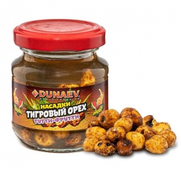 Главная Продукция Карповая ловля Консервированные зерновые смеси Dunaev Насадка стеклобанка "Дунаев Тигровый орех цельный" 100мл Тутти-Фрутти