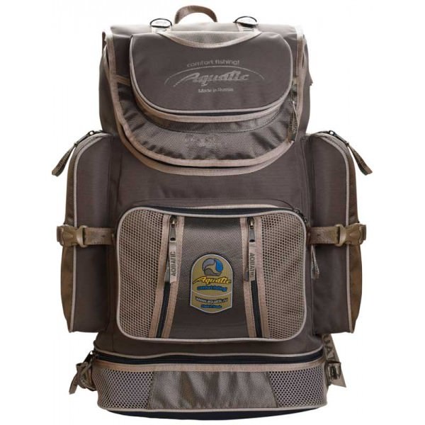 Рыболовный рюкзак Aquatic среднего размера объемом около 50 литров изготавливается из непромокаемых нейлоновых материалов. Рюкзак имеет нижнее изолированное, вентилируемое отделение и 5 дополнительных карманов с возможность закрепления дополнительных вещей снаружи. Уплотнённая основа и комфортная подвеска с грудной регулировкой дают возможность очень широкого применения.
