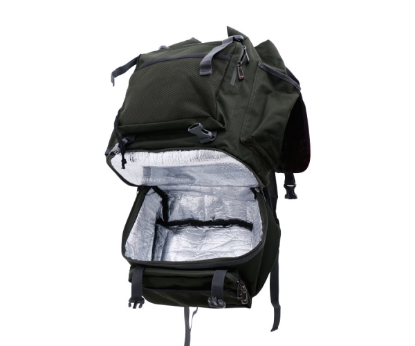 Оригинальный рюкзак, состоящий из двух отделений. Нижнее – термоизоляционное. Оно может служить для перевозки как прикормки с приманками, так и скоропортящихся продуктов. Использование хладагента (приобретается отдельно) позволяет сохранять низкую температуру внутри отделения значительно дольше. Объемное верхнее отделение предназначено для перевозки снастей, снаряжения экипировки. Доступ в него возможен как через верхний клапан, так и сбоку. Рюкзак снабжен дополнительными карманами для хранения аксессуаров. Сбоку имеется крепление для перевозки тубуса или чехла. Рюкзак изготовлен из прочного и водонепроницаемого полиэстера.