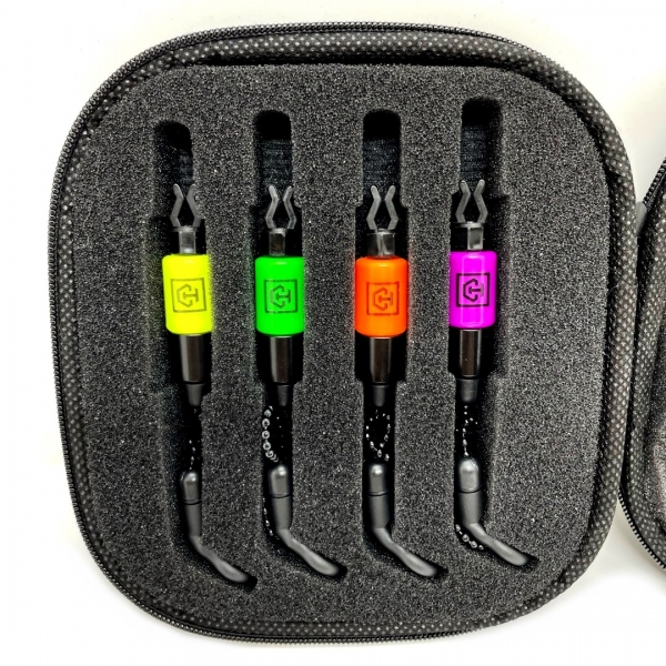 Набор механических сигнализаторов поклевки (батов) CarpHunter Black Label 4шт поставляется в очень компактном кейсе, голова имеет отверстие для изотопа и соединена с креплением тонкой металлической цепочкой, само крепление выполнено из пластика в виде «хоккейной клюшки».