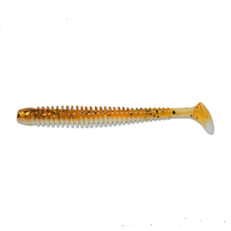 Прогонистый виброхвост-червь  очень популярной формы. Тело максимально эластичное, легкая хвостовая лопатка приходит в движение от едва уловимых потяжек удилищем. Отлично сочетается с офсетным крючком, не препятствуя надежной подсечке.  Многочисленные ребрышки на тельце создают привлекающий рыбу гидроакустический эффек­­­­т. Очень хорошо работает в стоячей воде, на медленном и среднем течении. Допускает оснащение очень легкими грузилами, а также отлично ловит в легкой прибрежной и травяной ловле вообще без огрузки. Вызывает интерес не только у классических хищников наших вод, но и регулярно приносит поимки крупной мирной рыбы – леща, сазана. Представлена в размере 4 дюйма (10 см.)