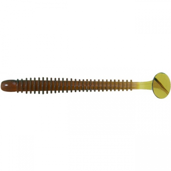 Прогонистый виброхвост-червь  очень популярной формы. Тело максимально эластичное, легкая хвостовая лопатка приходит в движение от едва уловимых потяжек удилищем. Отлично сочетается с офсетным крючком, не препятствуя надежной подсечке.  Многочисленные ребрышки на тельце создают привлекающий рыбу гидроакустический эффек­­­­т. Очень хорошо работает в стоячей воде, на медленном и среднем течении. Допускает оснащение очень легкими грузилами, а также отлично ловит в легкой прибрежной и травяной ловле вообще без огрузки. Вызывает интерес не только у классических хищников наших вод, но и регулярно приносит поимки крупной мирной рыбы – леща, сазана. Представлена в размере 4 дюйма (10 см.)