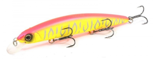 Здесь представлен прогонистый изящный минноу из серии Montero 110SP. Корпус длиной 11 см скрывает в себе сложную систему огрузки. Во-первых, внутри расположен продольный изогнутый канал. По нему перекатываются два шарика, чтобы увеличить расстояние, на которое можно забросить приманку. Во-вторых, под этим каналом расположена отдельная камера с шариком, который отвечает за шумовой эффект. В-третьих, ближе к головной части и между средним и хвостовым тройником есть две стационарные пластины. Они прижаты к брюшку, потому минноу Strike Pro серии Montero 110SP показывают выраженный, четкий роллинг. Продольные колебания сохраняются некоторое время при перерыве в проводке. Приманка будет соблазнительно играть на равномерке. Зависать неподвижно на заданном горизонте при паузе в Stop & Go, чтобы вывести из себя даже неактивную рыбу. Однако минноу в первую очередь рассчитан на любые виды твича.