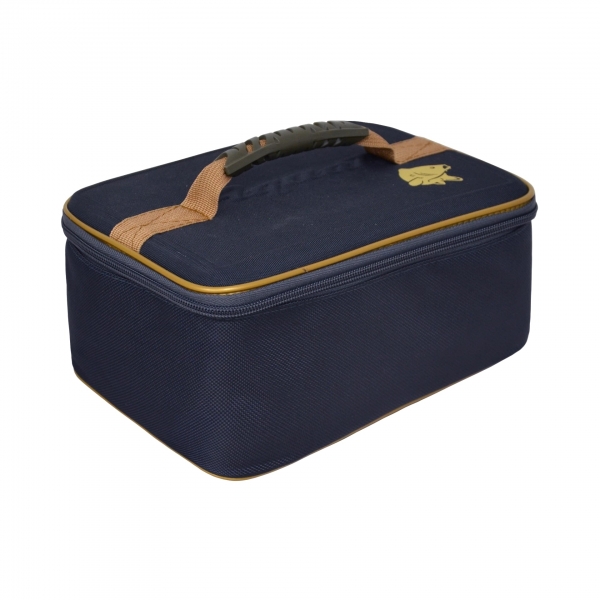 Сумка С-39 для кормушек, грузов, оснасток и т.д. имеет сверху прорезиненную ручку, закрепленную на жесткой пластиковой крышке. Внутри в верхней части расположен дополнительный карман из сетки на молнии, нижняя часть разделена эластичными перегородками на 4 ячейки, которые крепятся с помощью липучек, благодаря чему количество и размеры ячеек можно варьировать при необходимости.