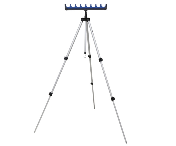 Телескопическая тренога Flagman изготовлена из алюминия и оснащена гребенкой из мягкого пористого материала, предохраняющего бланки удилищ от царапин и соскальзывания при поклевке. Данная тренога дает возможность установки нескольких удилищ одновременно. В основном треноги такого типа предназначены для хранения запасных удилищ на рыбалке, но они также с успехом применяются при ловле на фидер и матч.
