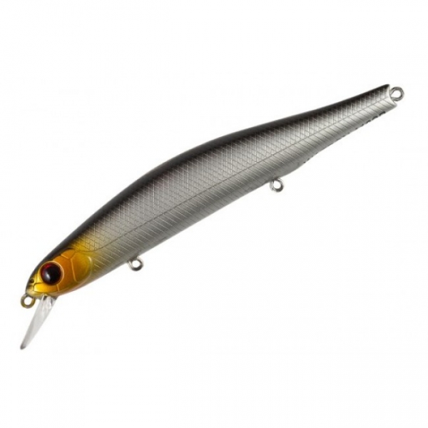Минноу имеет прогонистое горбатое тело с достаточно большим весом. Поверхность корпуса имеет рельефную фактуру, которая отлично имитирует чешую. Жаберные крышки вместе с большими живыми 3D глазами делают минноу очень реалистичным. Большой спектр натуральных и весьма правдоподобных окрасок отлично копируют живую рыбку. Приманка оснащается небольшой лопастью.