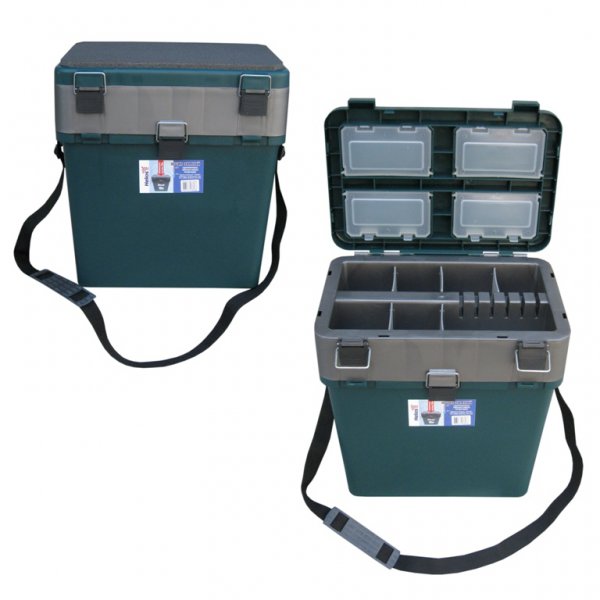 В крышке ящика предусмотрены четыре отделения для хранения насадки и мелких принадлежностей.  Каждое отделение закрывается крышкой с пружинными фиксаторами, выполненными из прозрачного полипропилена. Среднее отделение ящика имеет съемные перегородки, упрочняющие всю конструкцию и разделяющие отделение на отсеки. Нижняя емкость может использоваться для хранения прикормки, крупных рыболовных принадлежностей или улова.