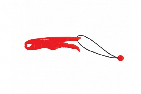 Липгрип ZipGrip 25 позволит извлечь рыбу из воды без помощи подсачека и не запачкав руки. Захват челюстной имеет длину 25 см и вес 120 грамм, в качестве основного материала производителем использован ABS пластик, благодаря чему захват имеет положительную плавучесть.  ZipGrip 25 имеет яркий цвет, благодаря чему его будет сложно потерять в траве или песке.  Для лучшего захвата на поверхности сделано поперечное рифление , на подвижной ручке предусмотрены анатомические углубления под пальцы. Также в комплекте идет эластичный страховочный шнур.