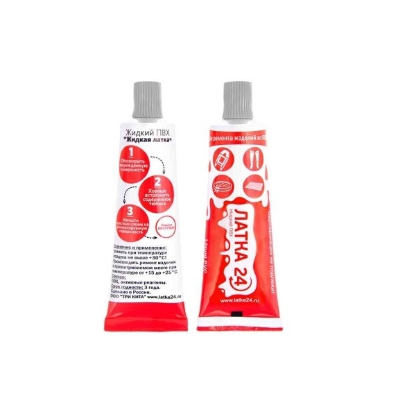 ЛАТКА24 для ремонта любых изделий из ПВХ. Теперь Вам не придется искать латку из похожего материала, чтобы заклеить поврежденные матрас или лодку. Достаточно нанести несколько капель на прокол или порез.