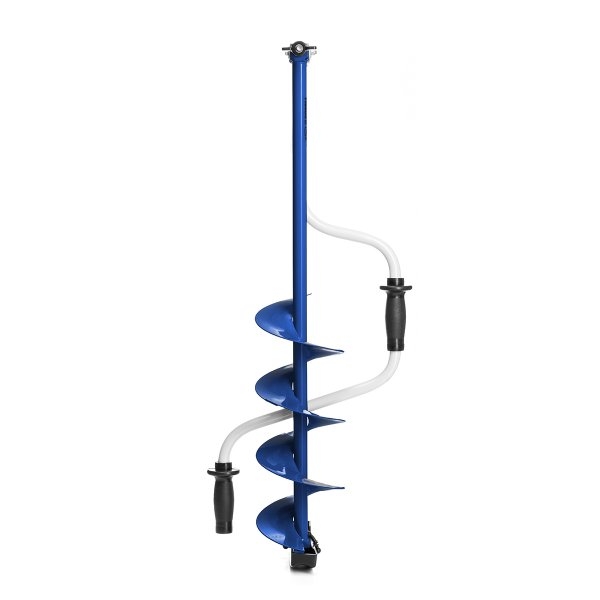 Ледобур рыболовный складной шнековый c левым вращением предназначен для бурения отверстий во льду при ловле рыбы. Верхняя рукоятка ледобура смещена относительно оси ледобура на 130 мм, а нижняя на 150 мм. Такое расположение рукояток позволяет вращать ледобур одновременно двумя руками, тем самым, увеличивая скорость бурения лунок во льду.