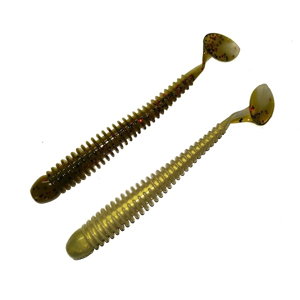 Прогонистый виброхвост-червь  очень популярной формы. Тело максимально эластичное, легкая хвостовая лопатка приходит в движение от едва уловимых потяжек удилищем. Отлично сочетается с офсетным крючком, не препятствуя надежной подсечке.  Многочисленные ребрышки на тельце создают привлекающий рыбу гидроакустический эффек­­­­т. Очень хорошо работает в стоячей воде, на медленном и среднем течении. Допускает оснащение очень легкими грузилами, а также отлично ловит в легкой прибрежной и травяной ловле вообще без огрузки. Вызывает интерес не только у классических хищников наших вод, но и регулярно приносит поимки крупной мирной рыбы – леща, сазана. Представлена в размере 4 дюйма (10 см.)
