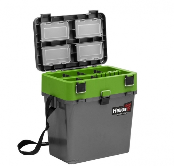 Ящик рыболовный зимний двухполочный Helios (19л) серый/салатовый