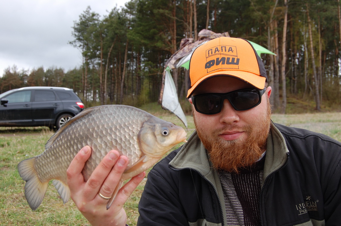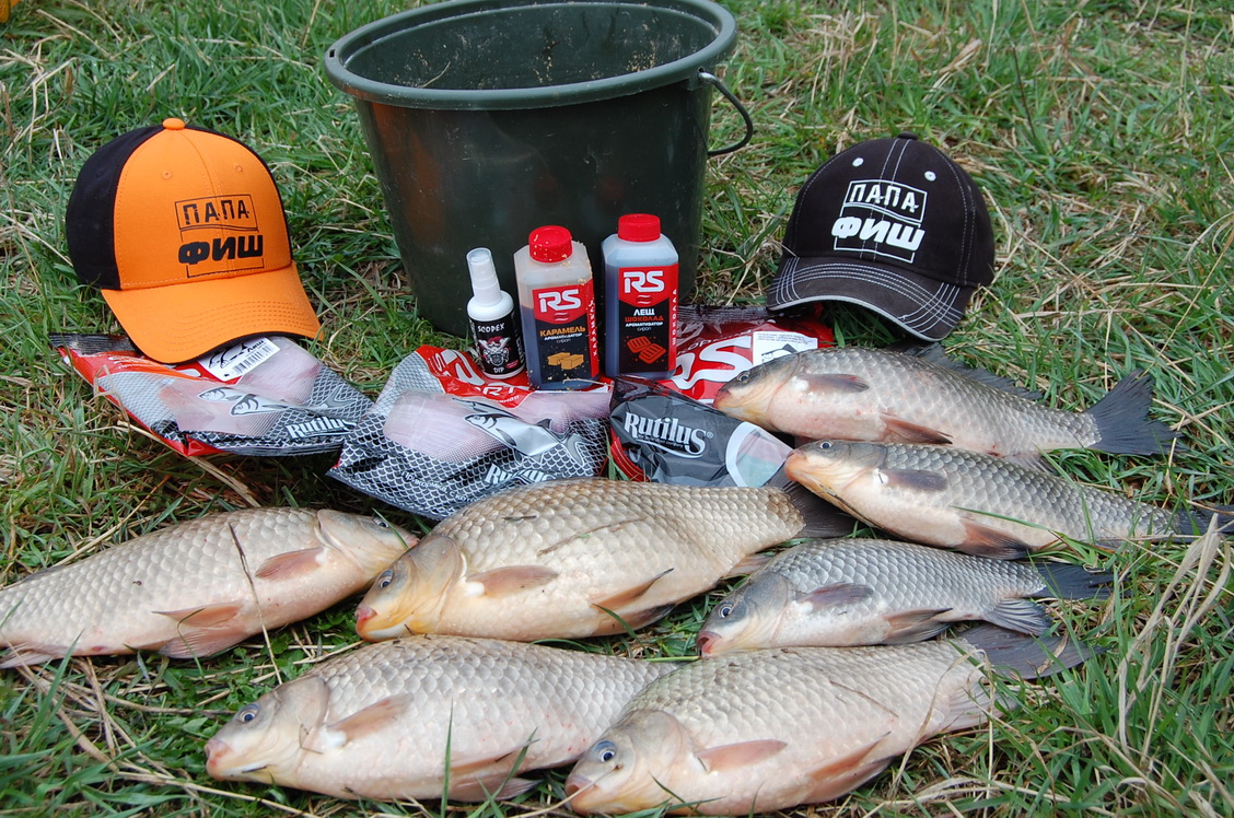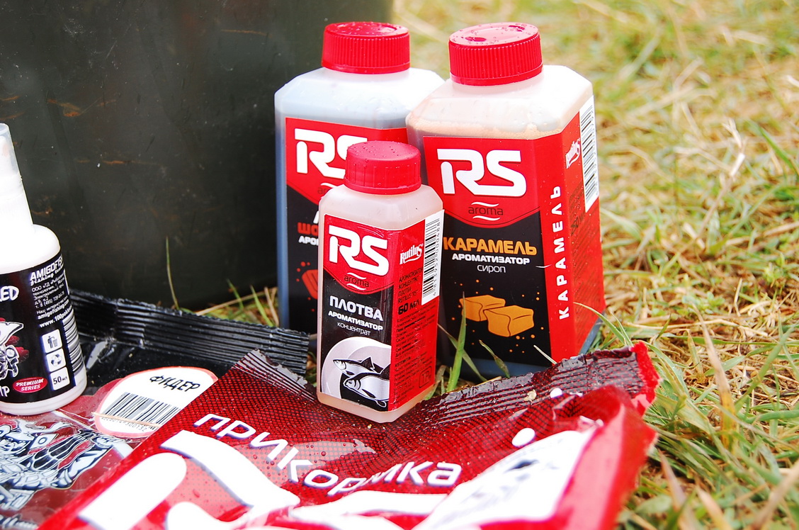 Я со старта схватил новинку от RS карась чеснок, добавил зеленого траперовского печива и стал кормиться. Этим же составом кормились Демон и Лаки Димка. Испанец же решил затестить вторую новиночку от Rs – лещ спорт река…